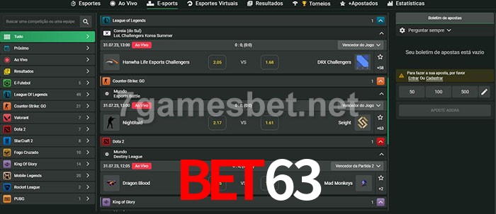 O bet63 oferece uma grande seleção de opções de apostas em e-sports com probabilidades competitivas